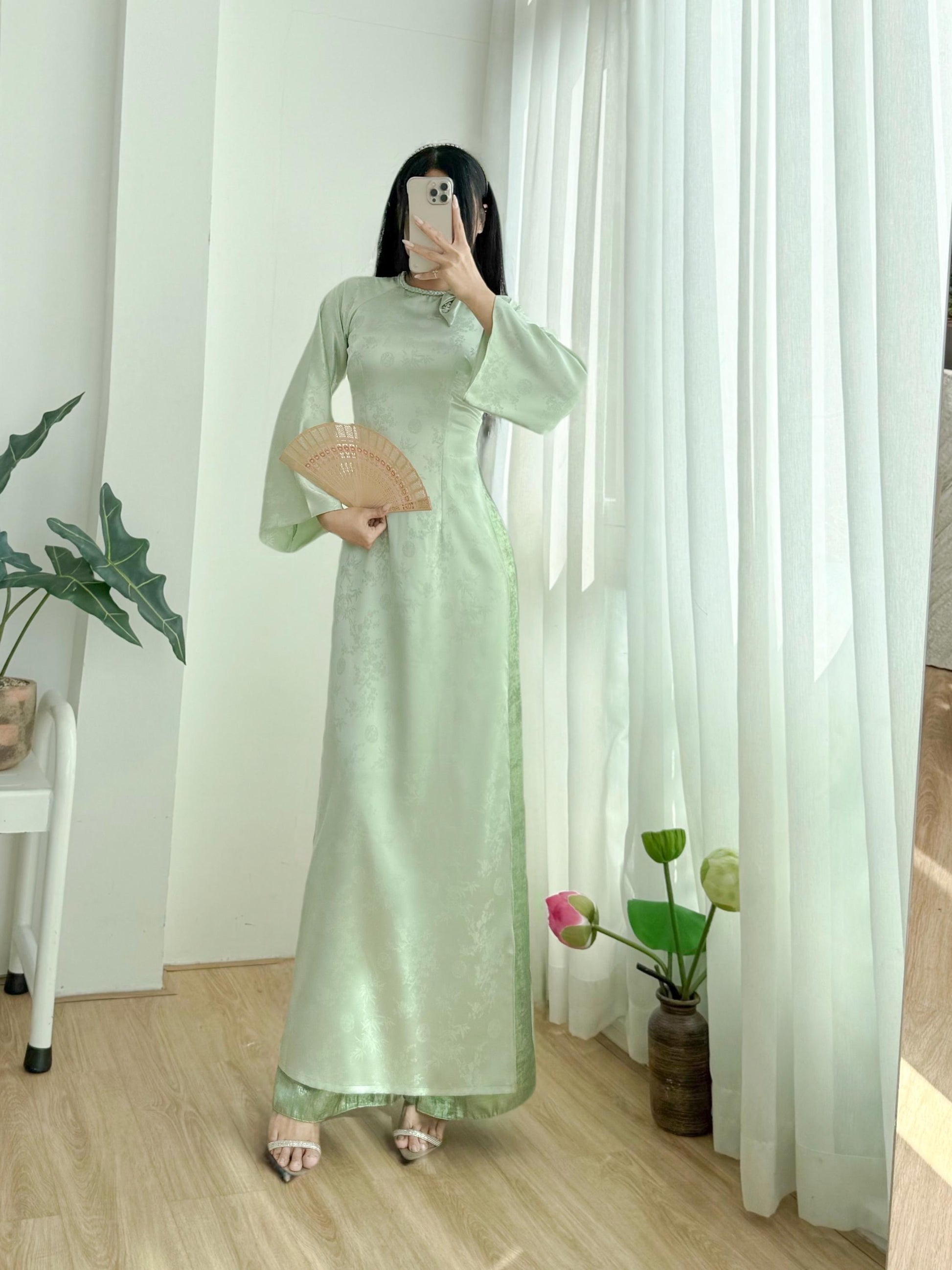 Our silk is highly selected with embossed flower patterns, giving it a unique shine from a distance and a delicate look at close sight. If you are a big fan of 3D ao dai but was not satisfied with normal materials on the market, this will be your perfect choice