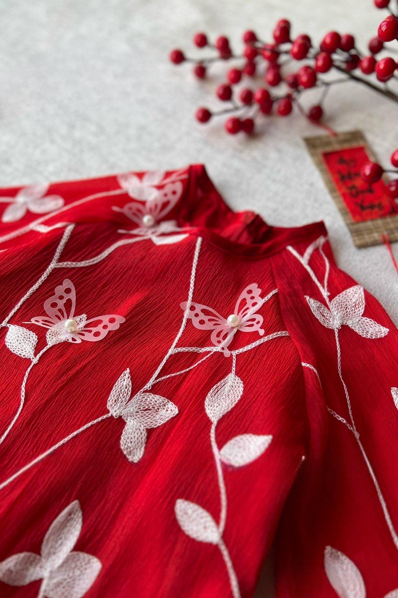 CLEARANCE- Aodai for girls size 1,5,8,9,10- RED/PINK