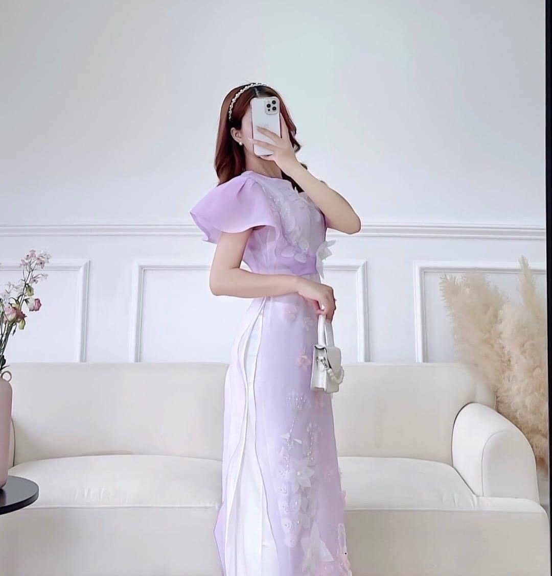 CLEARANCE size L modern áo dài with butterfly embellishments