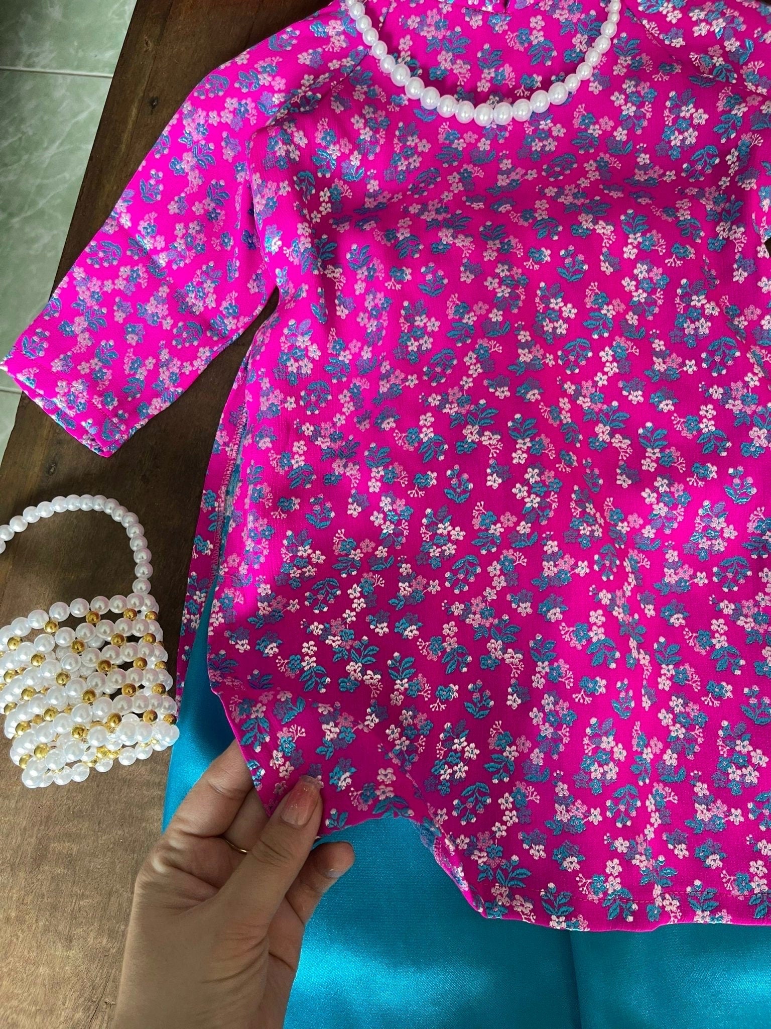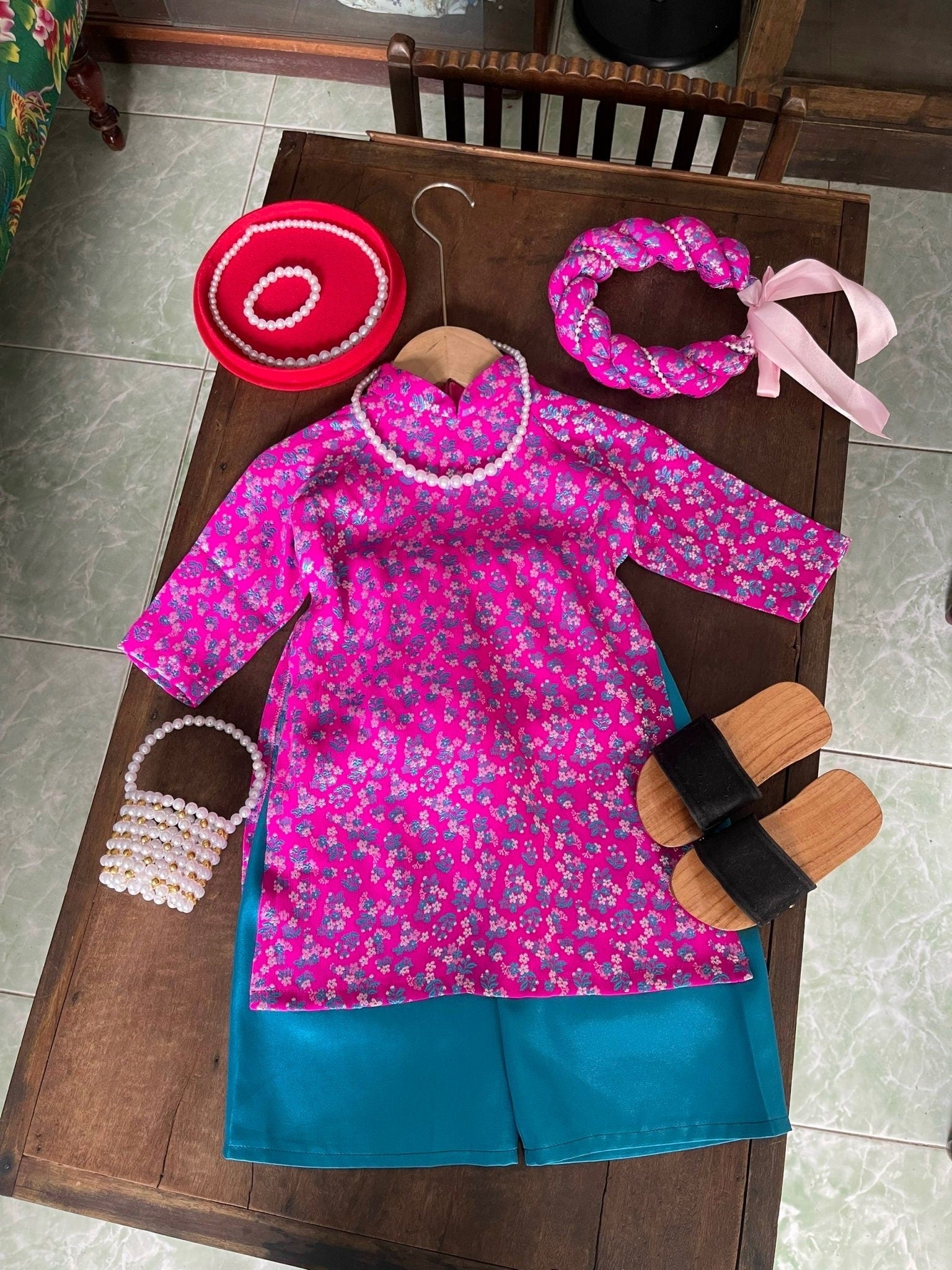 Made from famous Thai Tuan jacquard silk, the áo dài was made by our most experienced tailor. It will be the best choice for your baby’s first ao dai.