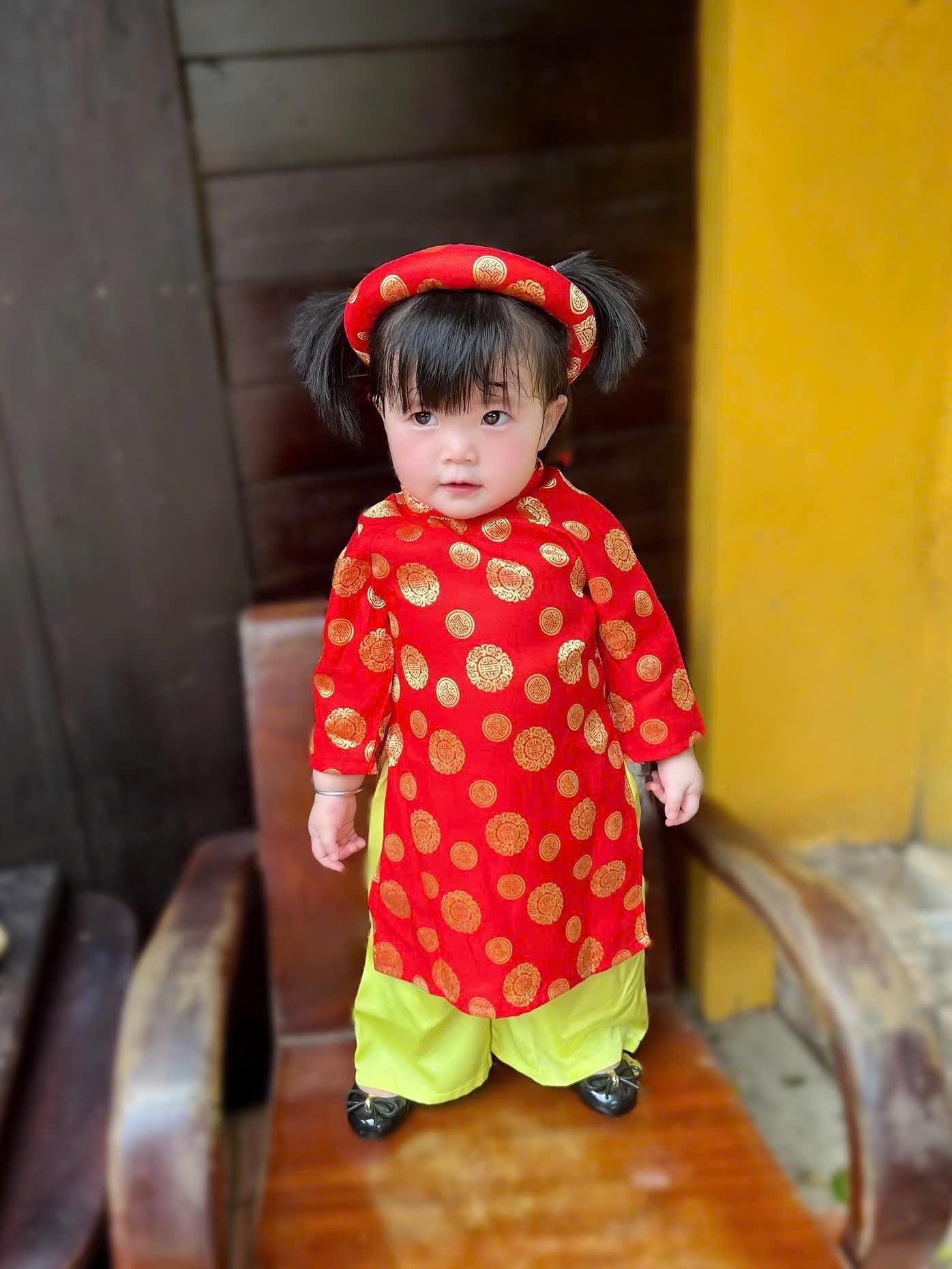 Thai Tuan baby, toddler silk ao dai and headband for girls- baby first ao dai