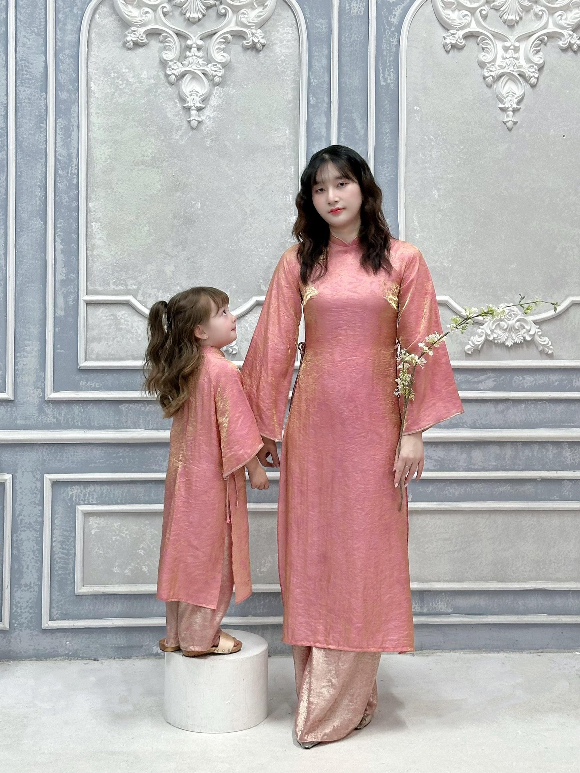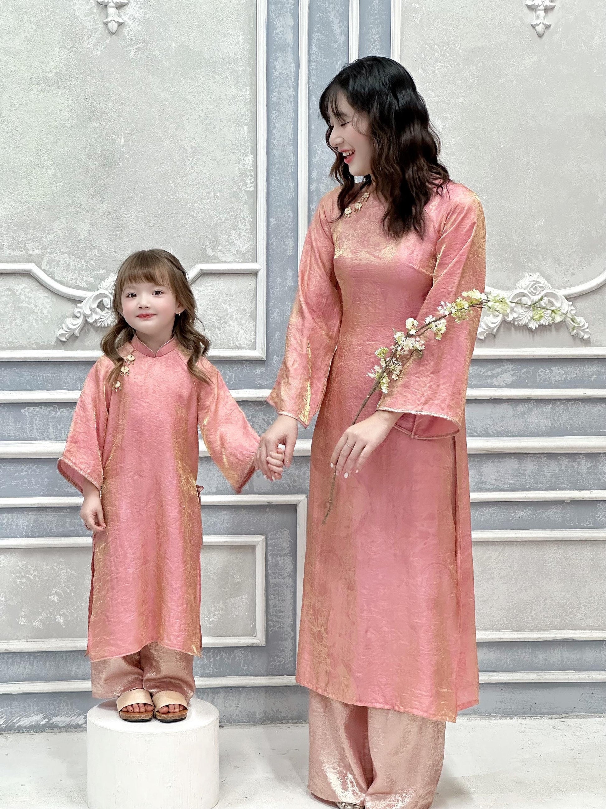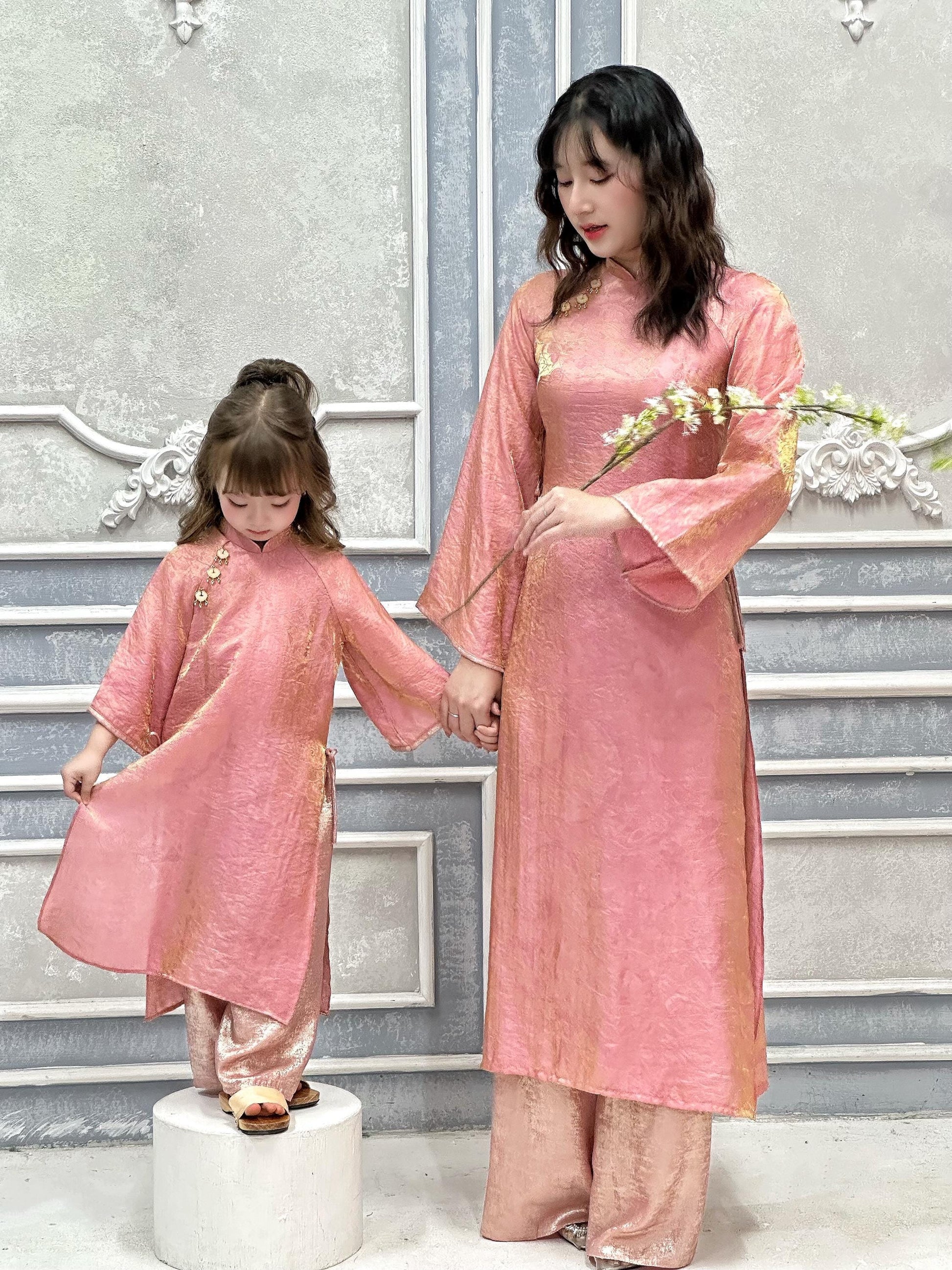 Women and kid matching ao dai and headband ao dai big size, over size