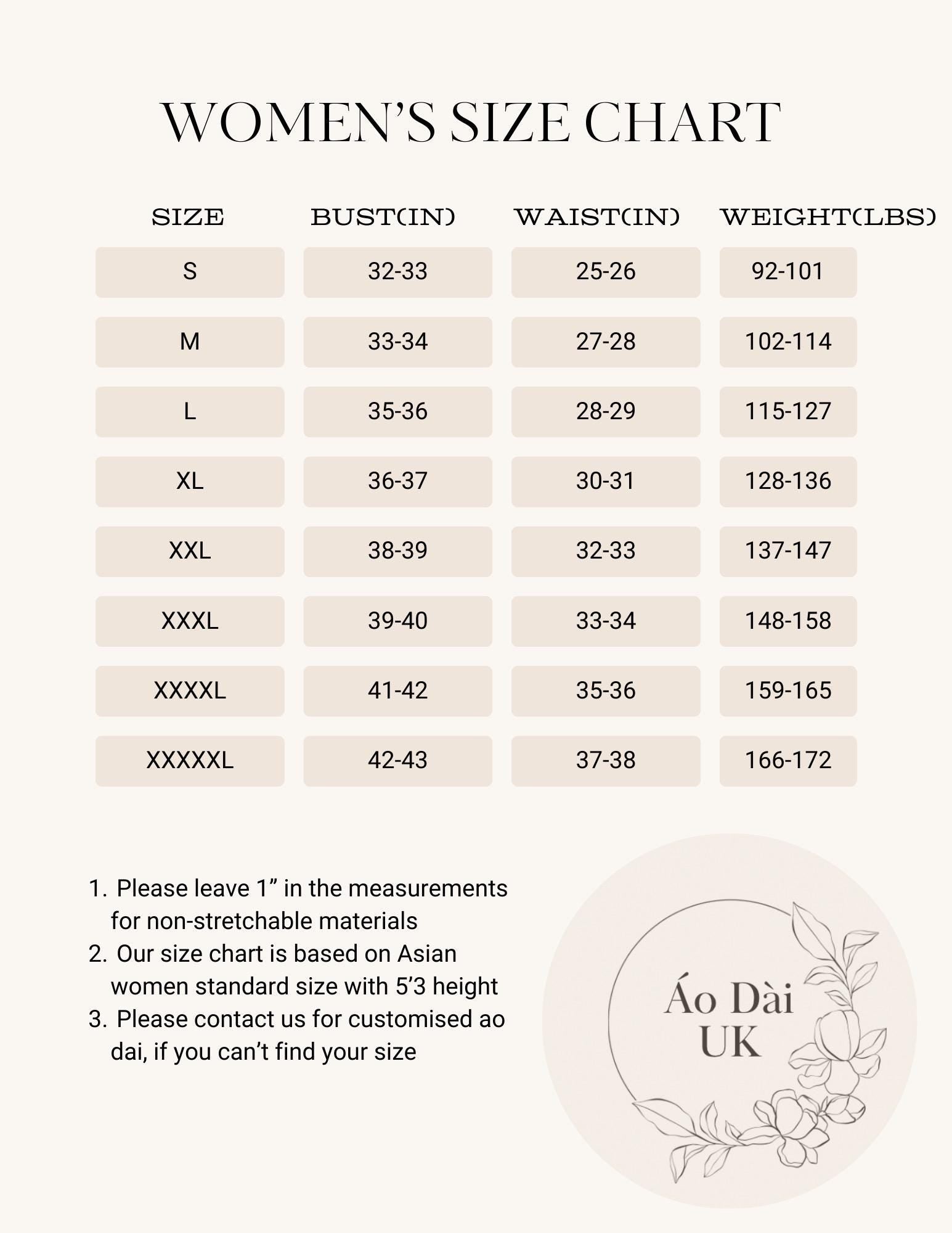 *We also do customized ao dai, please contact us for fabric availability and time scale